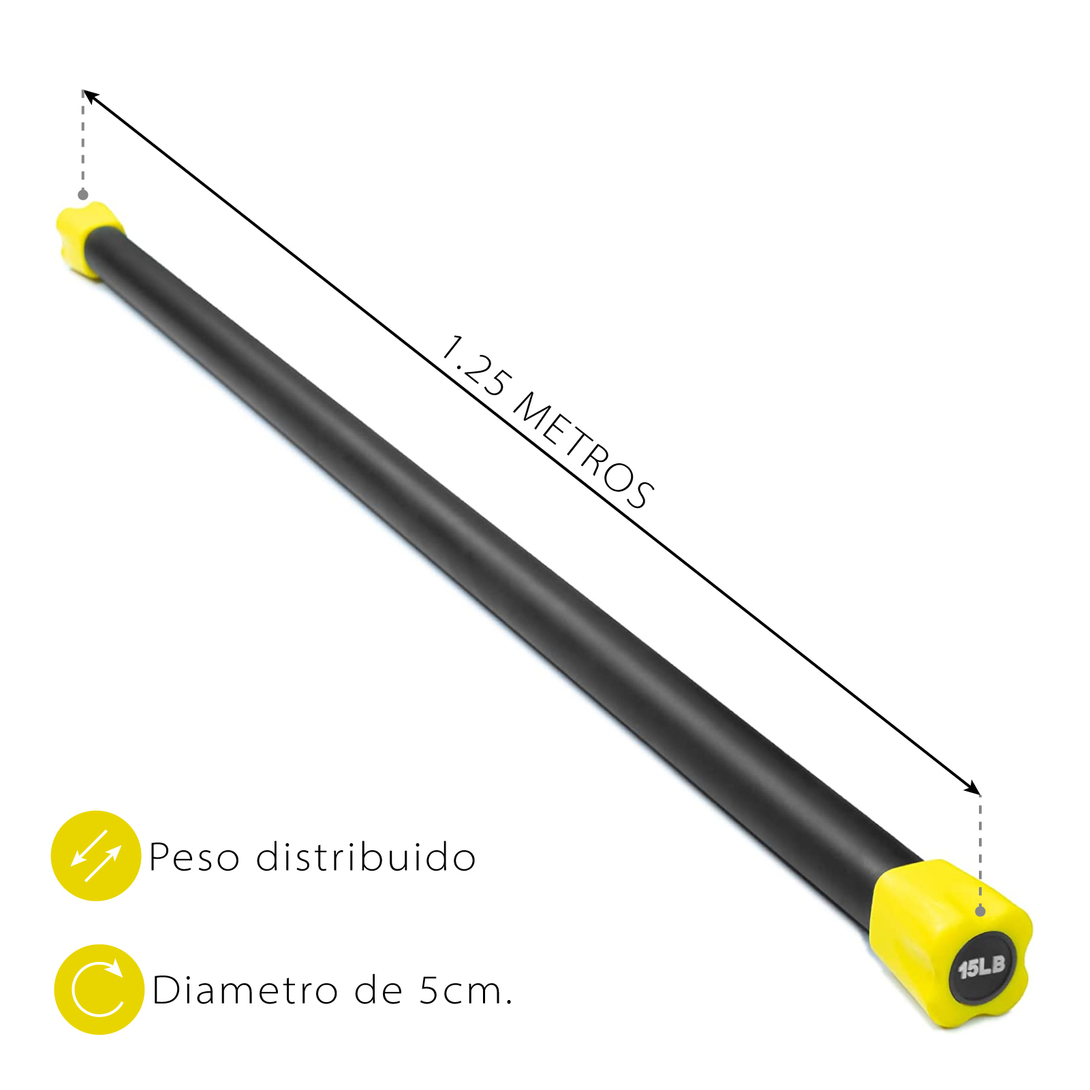 | Descripción | Barra de entrenamiento con peso distribuido incluido. |
