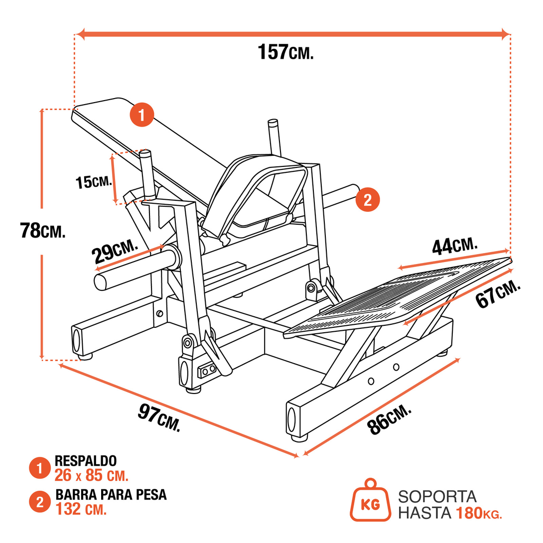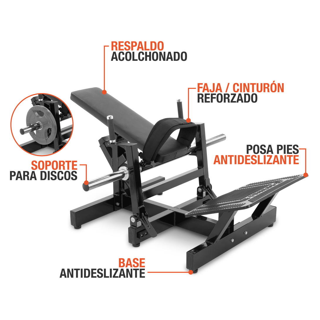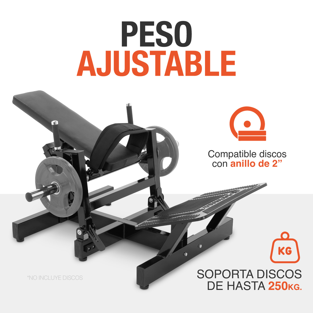 Diseñada para ofrecer resultados de alto nivel, esta máquina para piernas permite una carga máxima de hasta 180 kg, ideal para usuarios exigentes y entrenamientos intensivos tanto en casa como en gimnasios profesionales.