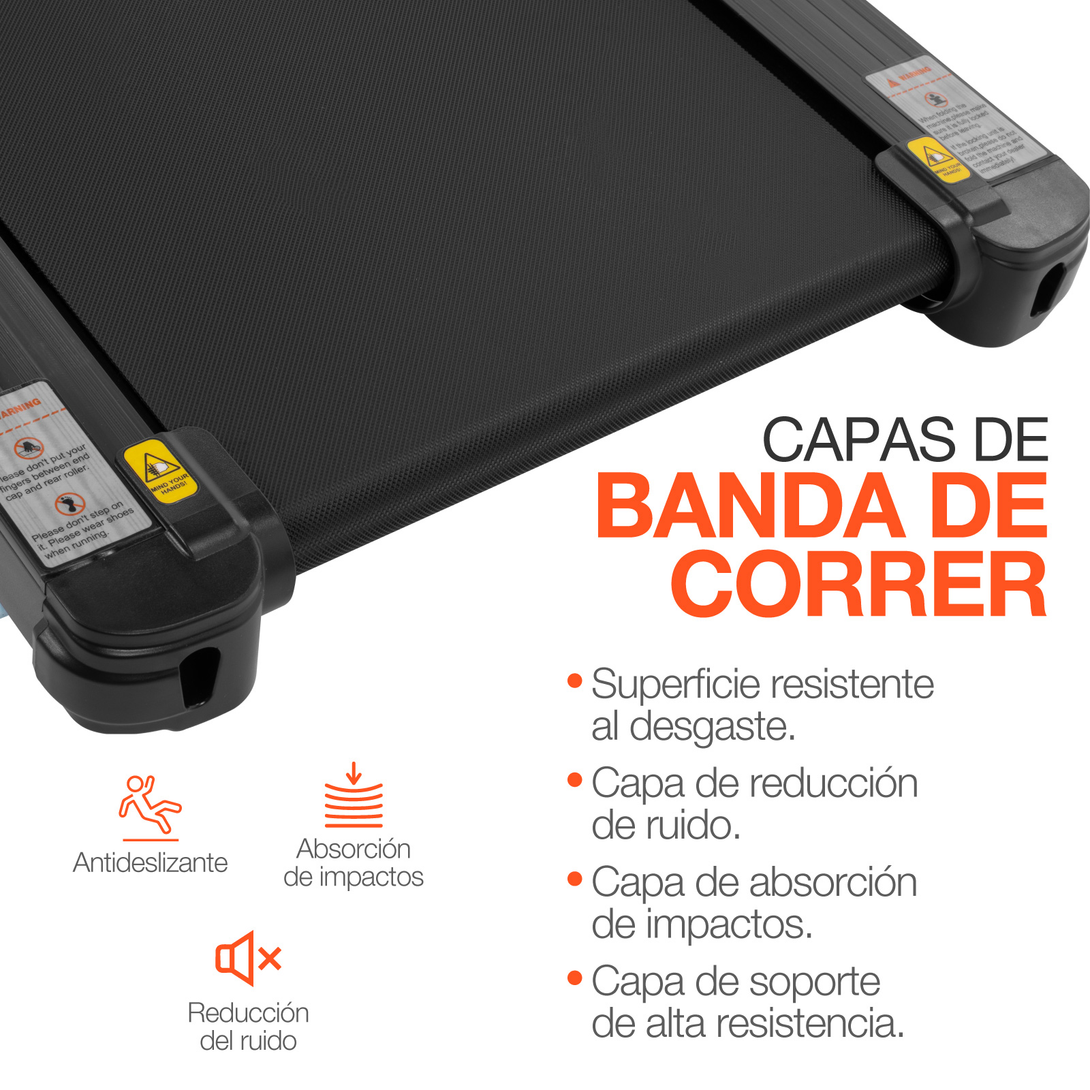 DISEÑO FUNCIONAL. Fabricada con materiales de alta resistencia, cuenta con una amplia superficie de carrera de 43 x 122 cm, ideal para correr o caminar con total comodidad. Su estructura sólida la hace perfecta para entrenar en casa, gimnasio o estudio personal.