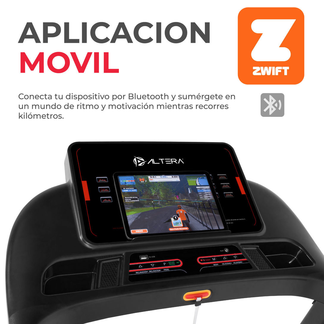 APLICACIÓN MOVIL. Con la aplicación móvil, puedes llevar tu entrenamiento a nuevas alturas. Conecta tu dispositivo a través de bluetooth y sumérgete en un mundo de ritmo y motivación mientras recorres kilómetros. ¿Quieres escuchar tu lista de reproducción favorita? ¡No hay problema! Con las opciones de conexión auxiliar y bluetooth, elige la música que te impulse a alcanzar tus metas.