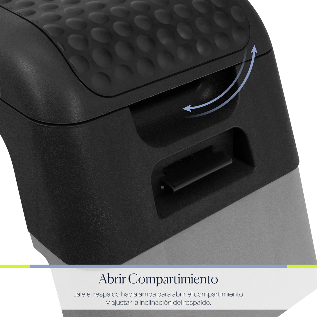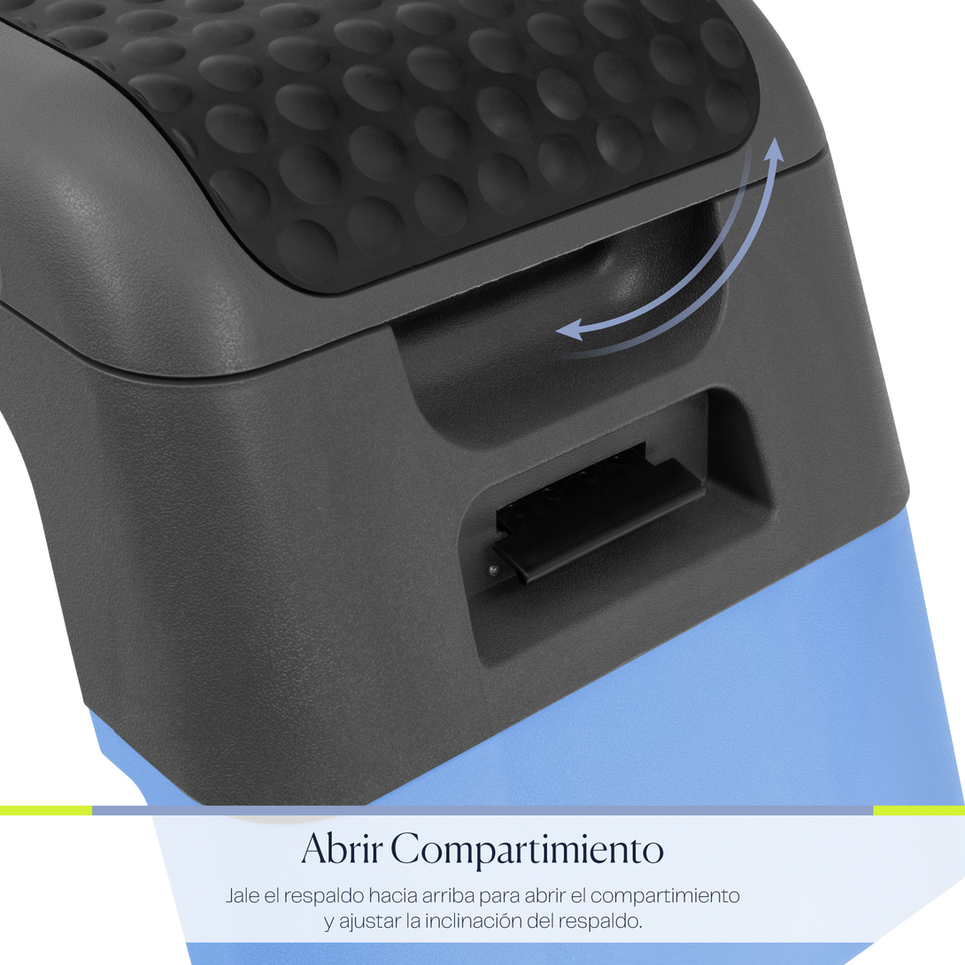 COMPARTIMIENTO MULTIUSOS: Al cambiar el ángulo de inclinación de tu banco descubrirás que dentro de este se encuentra un pequeño compartimiento donde podrás guardar tus accesorios de entrenamiento ya sea pequeñas pesas, cuerda para saltar o ligas de resistencia, las medidas del espacio son de 10 cm de altura, 38 cm de largo y 14.5 cm ancho.