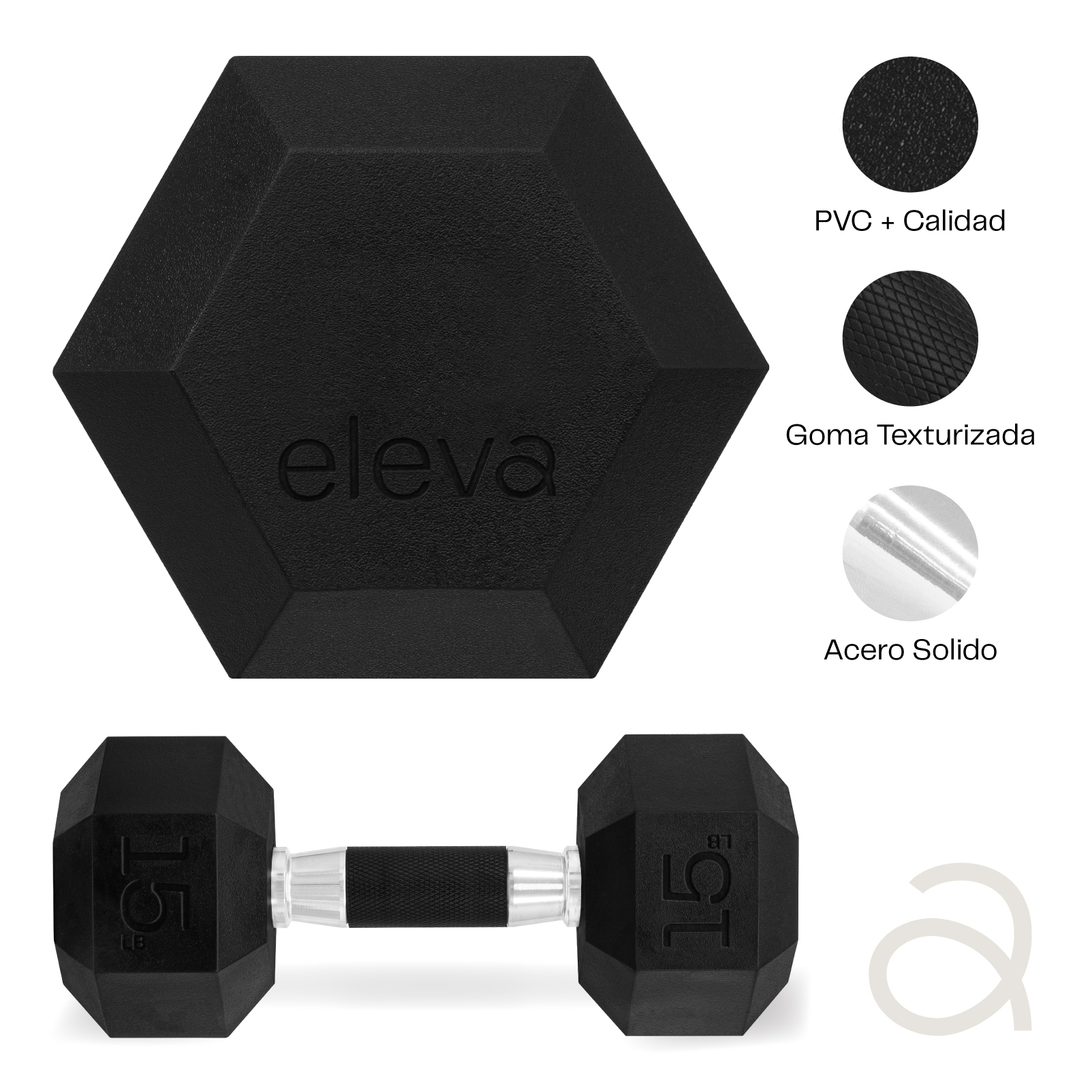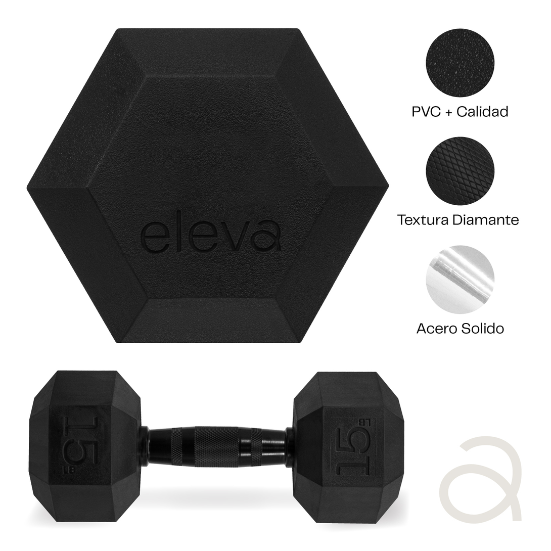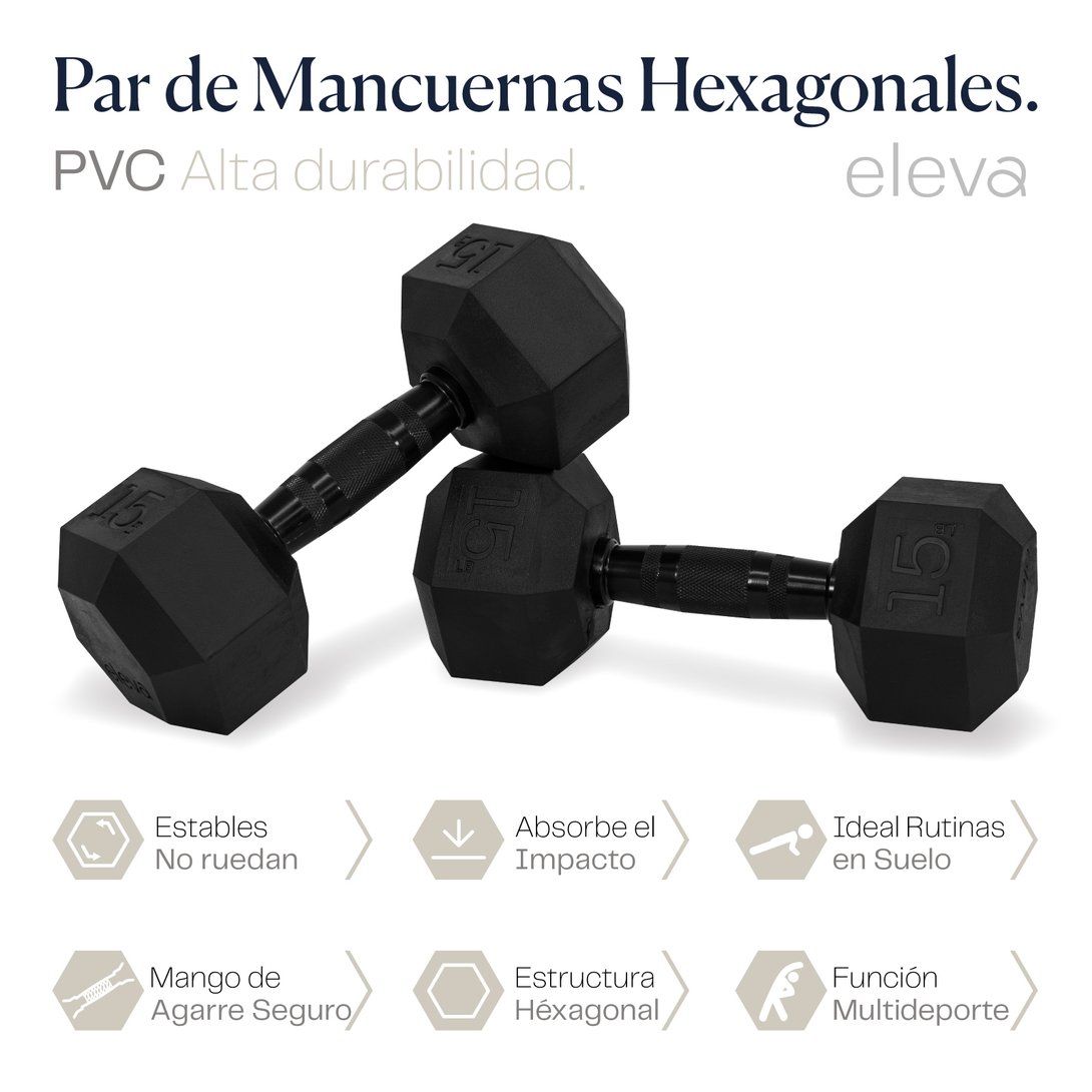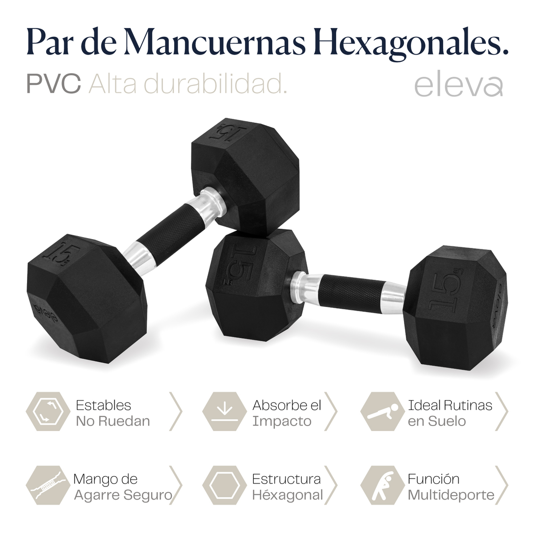 Set 2pzs 15lbs ELEVA - Mancuernas Hexagonales de PVC Premium