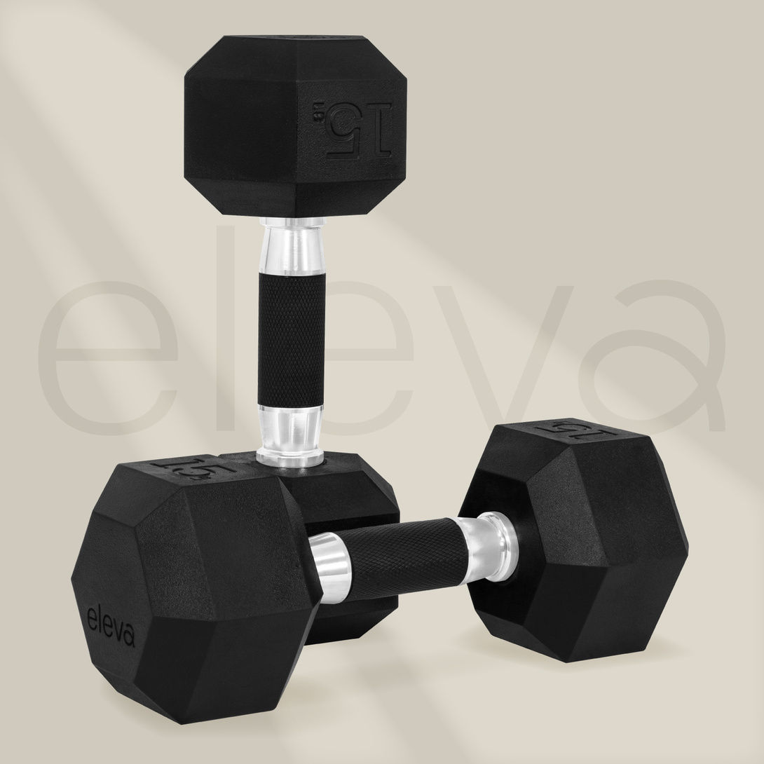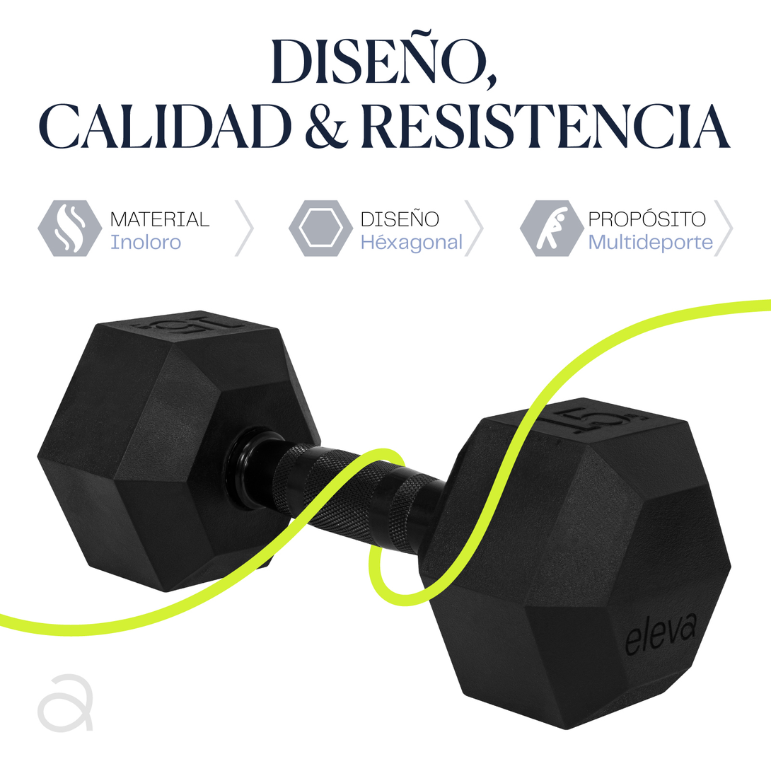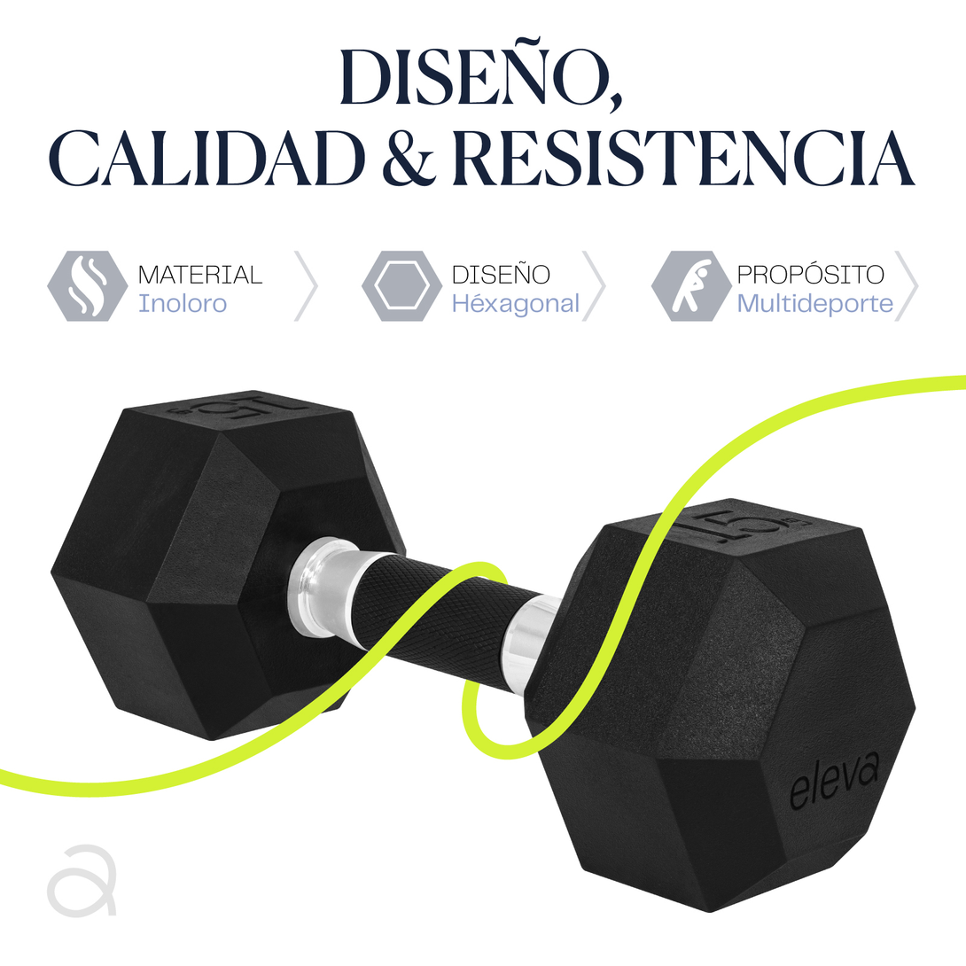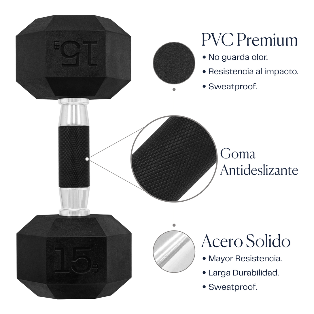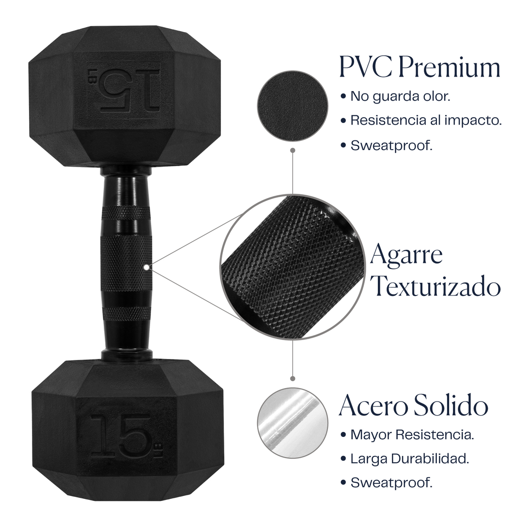 Set 2pzs 15lbs ELEVA - Mancuernas Hexagonales de PVC Premium