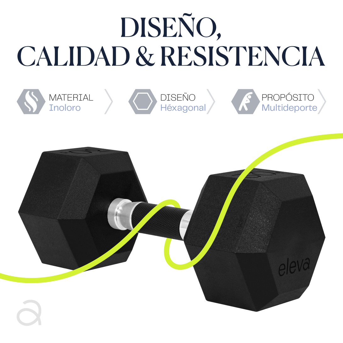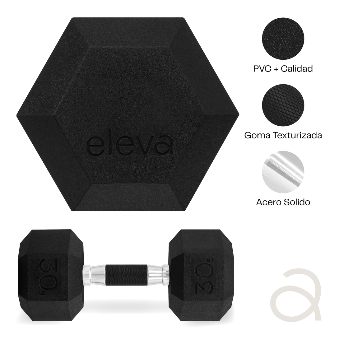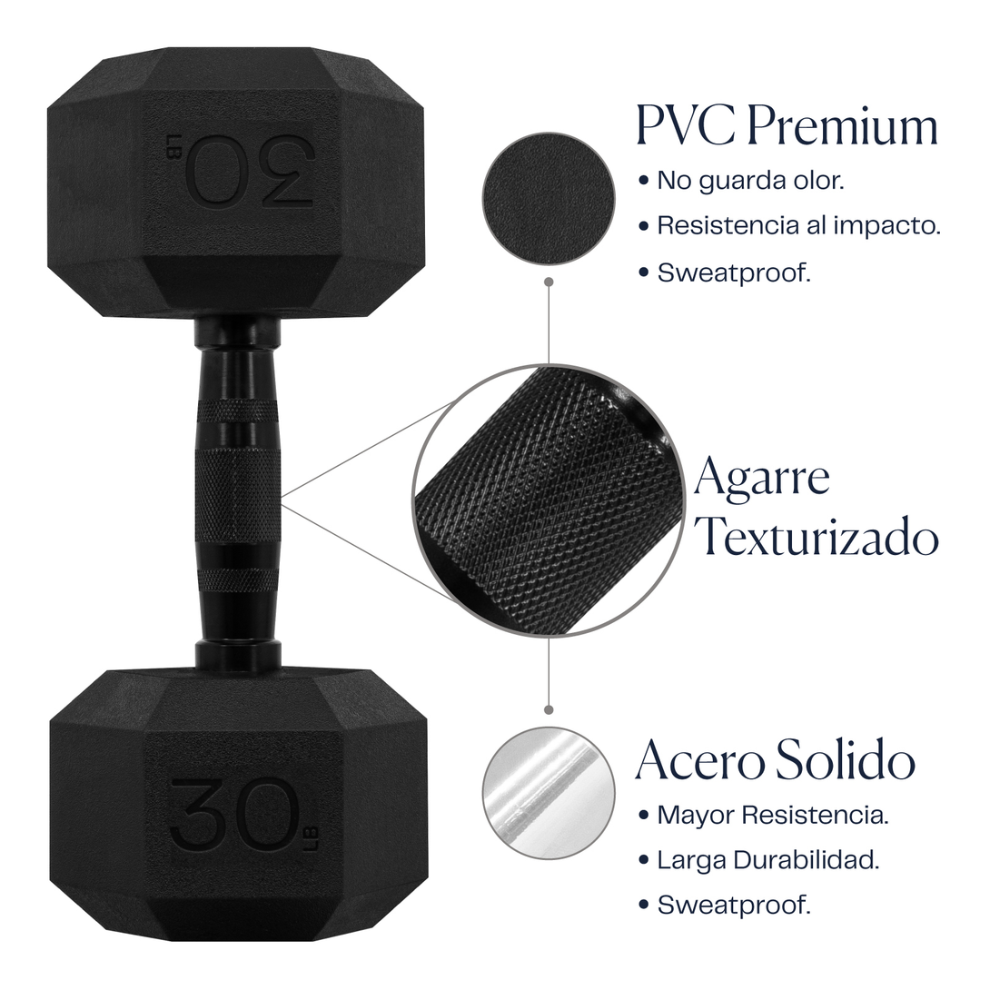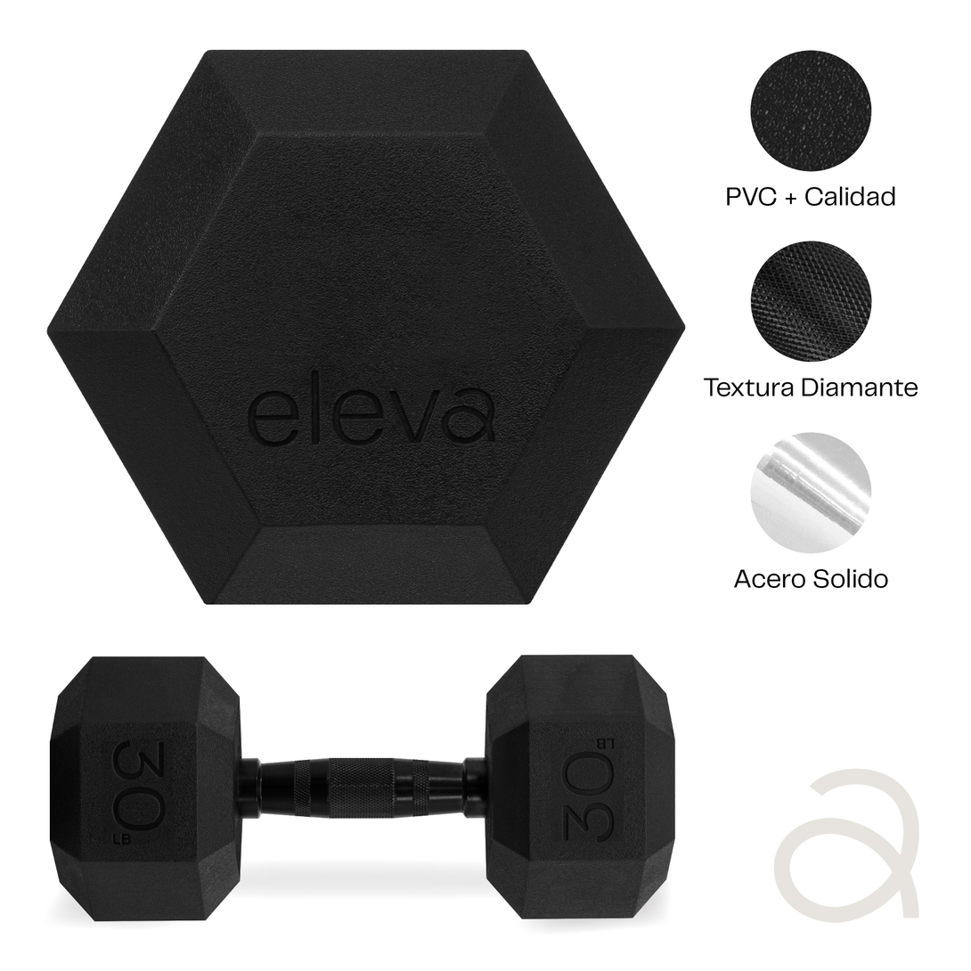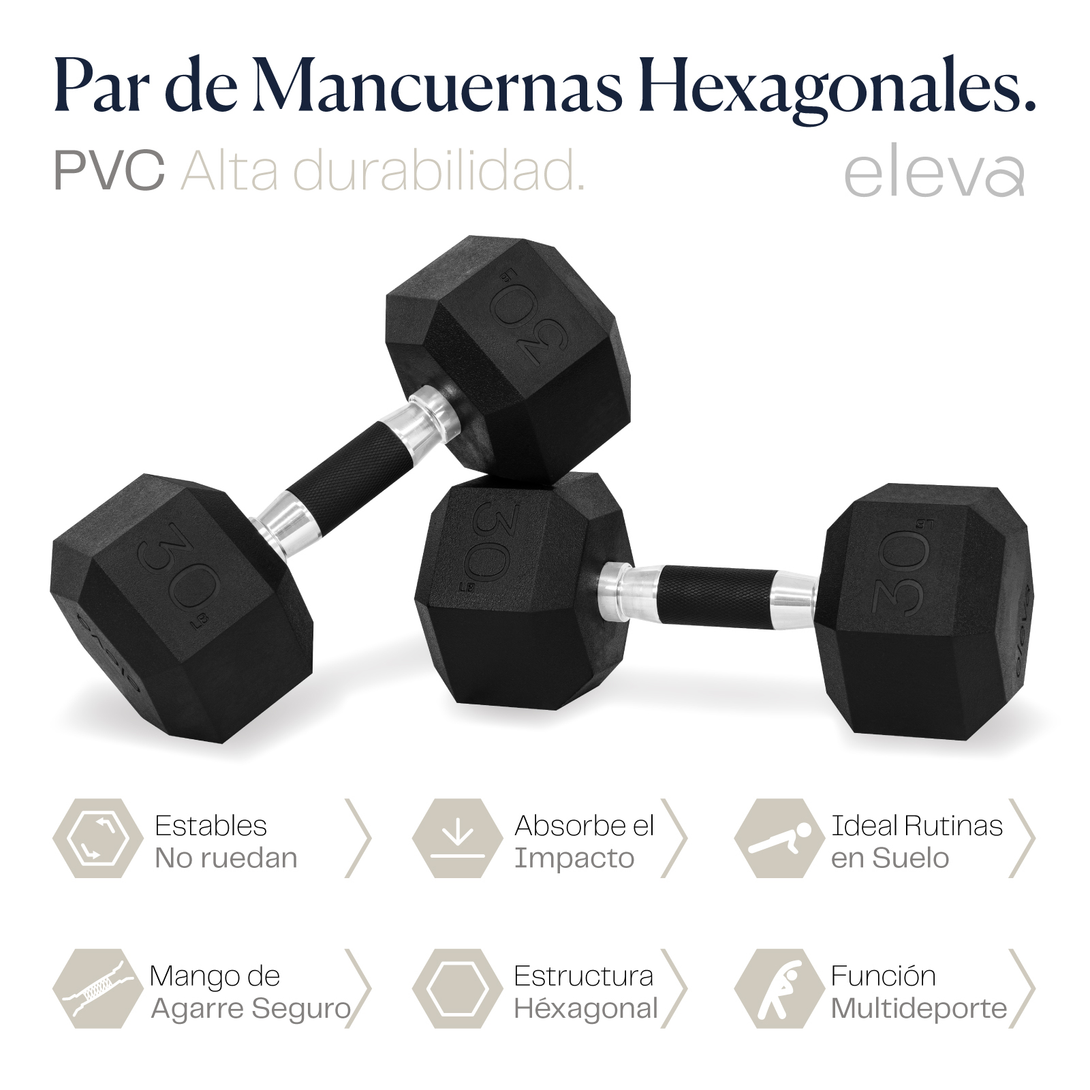 Set 2pzs 30lbs ELEVA - Mancuernas Hexagonales de PVC Premium