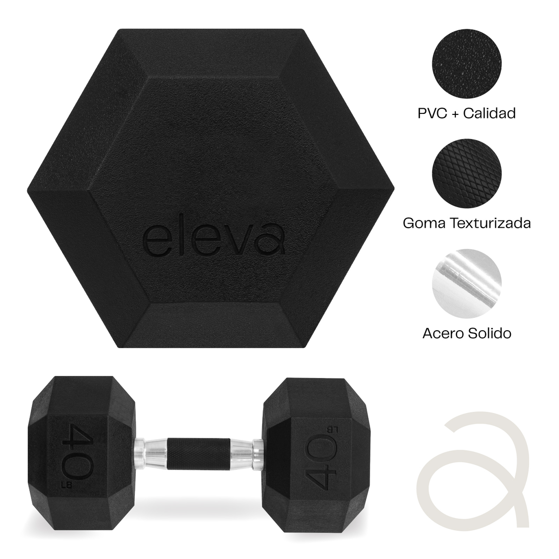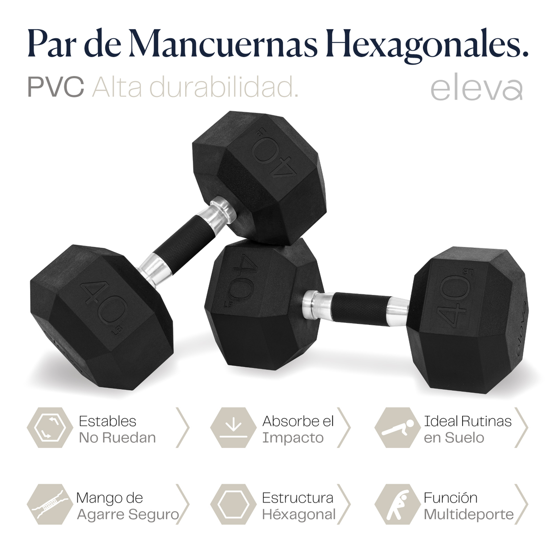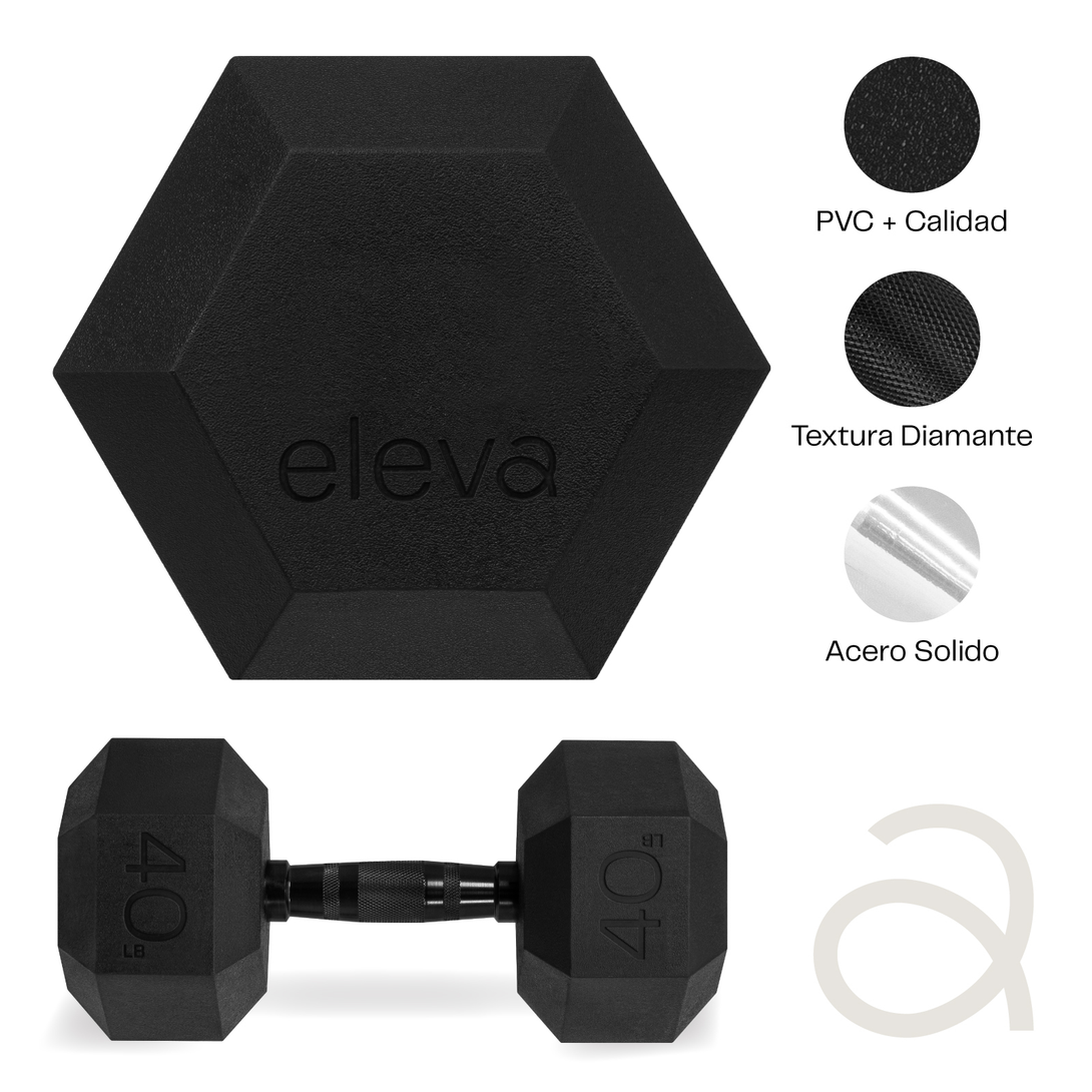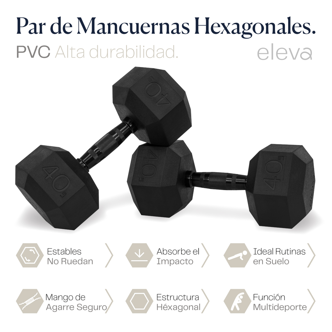 Set 2pzs 40lbs ELEVA - Mancuernas Hexagonales de PVC Premium