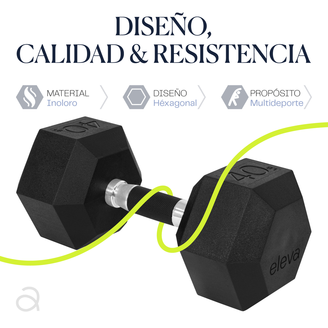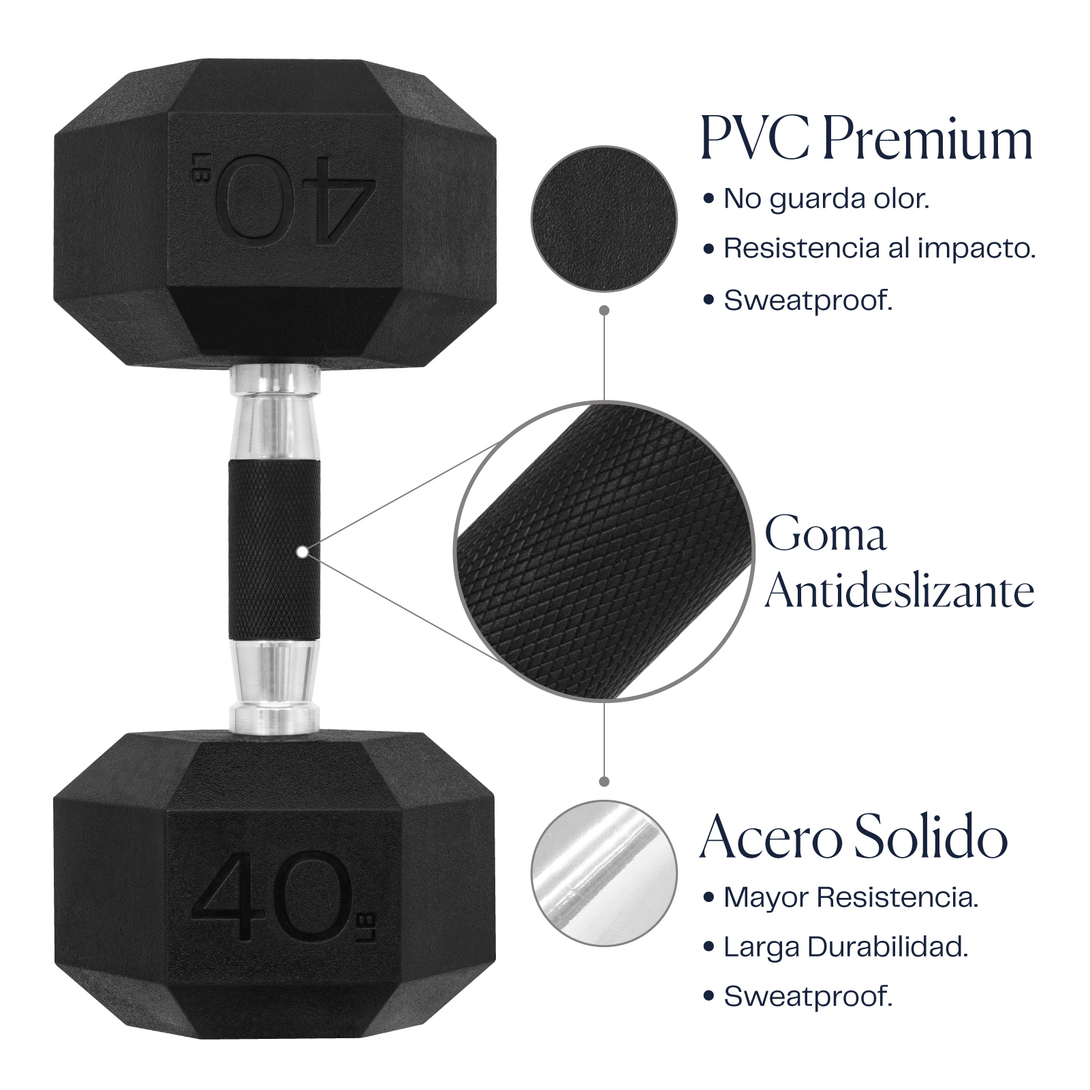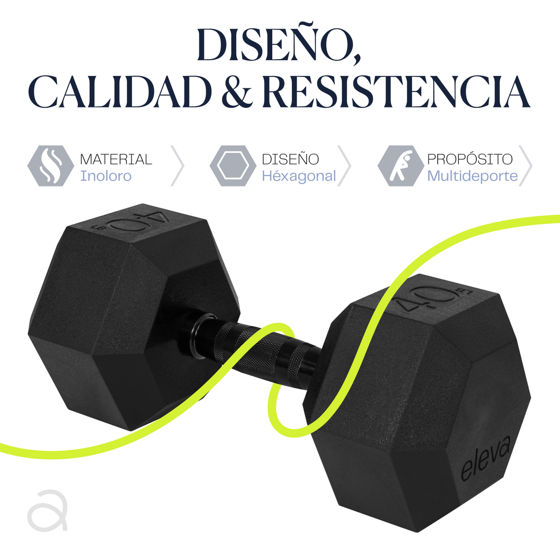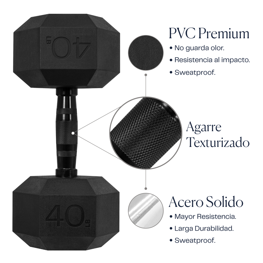 Set 2pzs 40lbs ELEVA - Mancuernas Hexagonales de PVC Premium