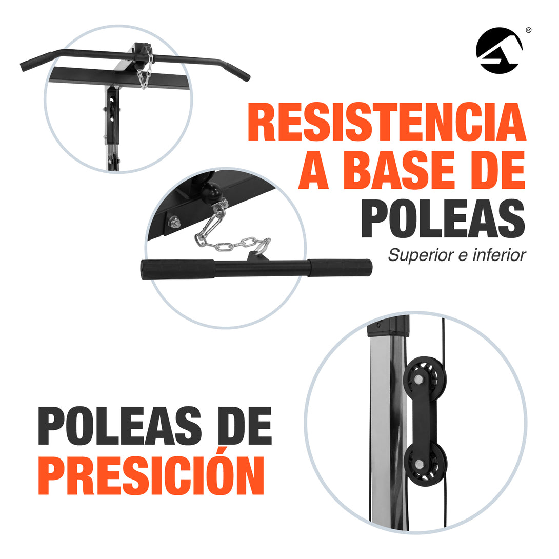 EJERCITATE COMPLETAMENTE Este Multifuncional te ayuda a hacer un sinfín de ejercicios diferentes y entrenar diferentes partes de tu cuerpo, ejercicios como dominadas, fondos, carga de peso, remo, etc.