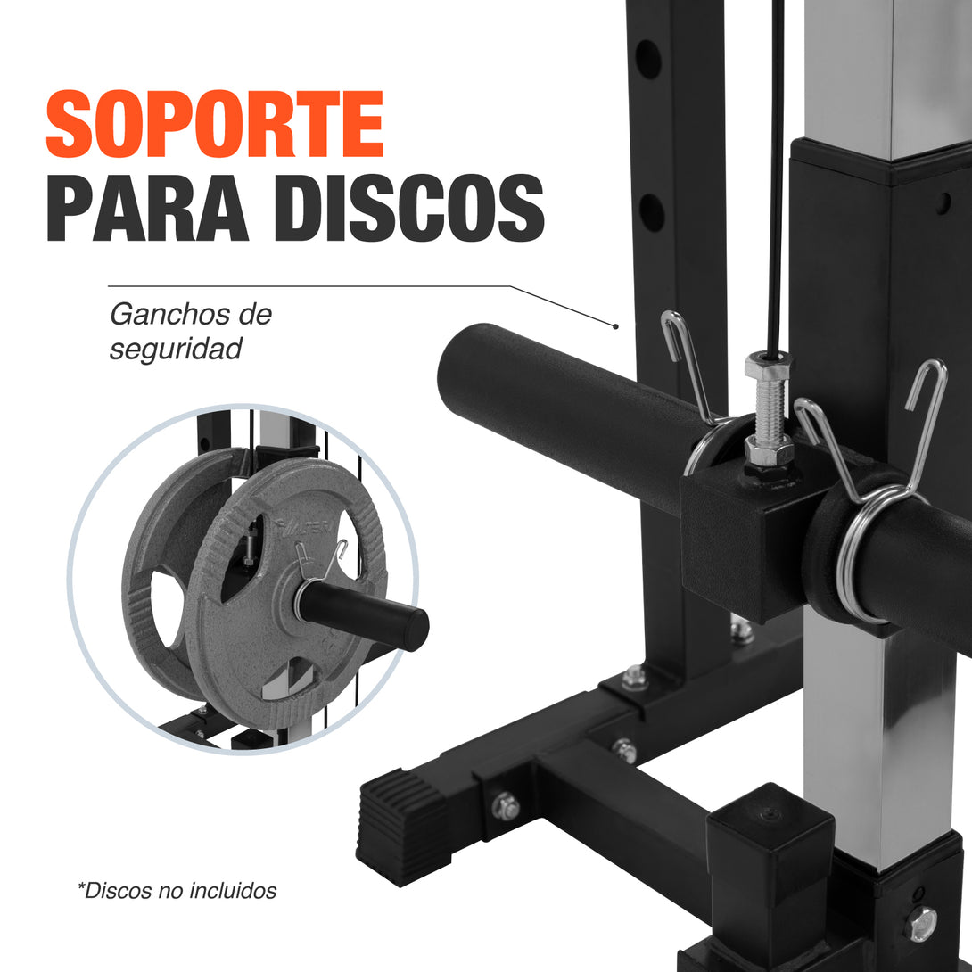 AMPLIAS DIMENSIONES Cuenta con el espacio necesario para hacer todo tipo de ejercicios tan solo debes usar tus discos olímpicos.